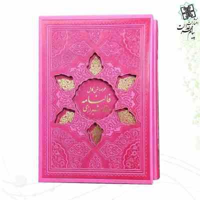 - پک 2 جلدی القرآن الکریم و فالنامه حافظ شیرازی(وزیری قاب کشویی چرم رنگی همراه دفتر بله برون)