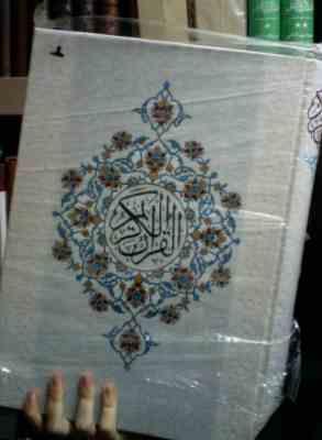 القرآن الکریم (رحلی.ترمه سفید .جعبه . پیام عدالت)
