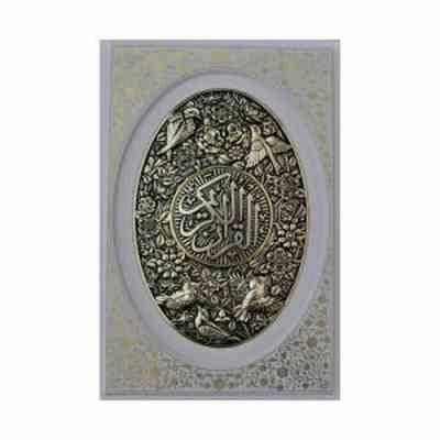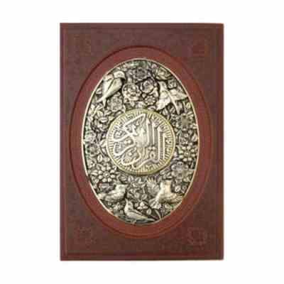 القرآن الکریم سفید / قهوه ای عروس (وزیری پلاک طلایی گل مرغ قاب کشویی . یاقوت کویر)